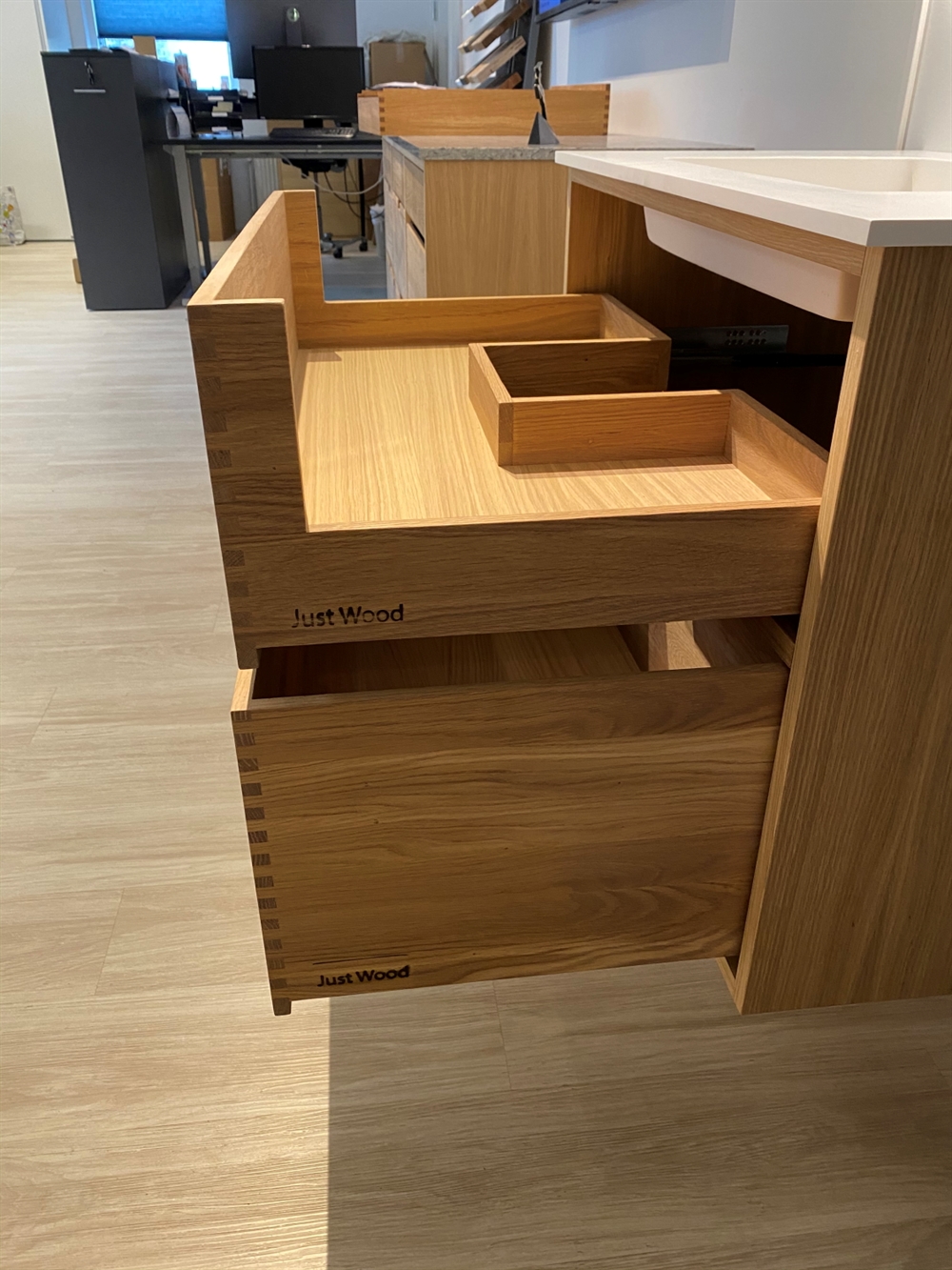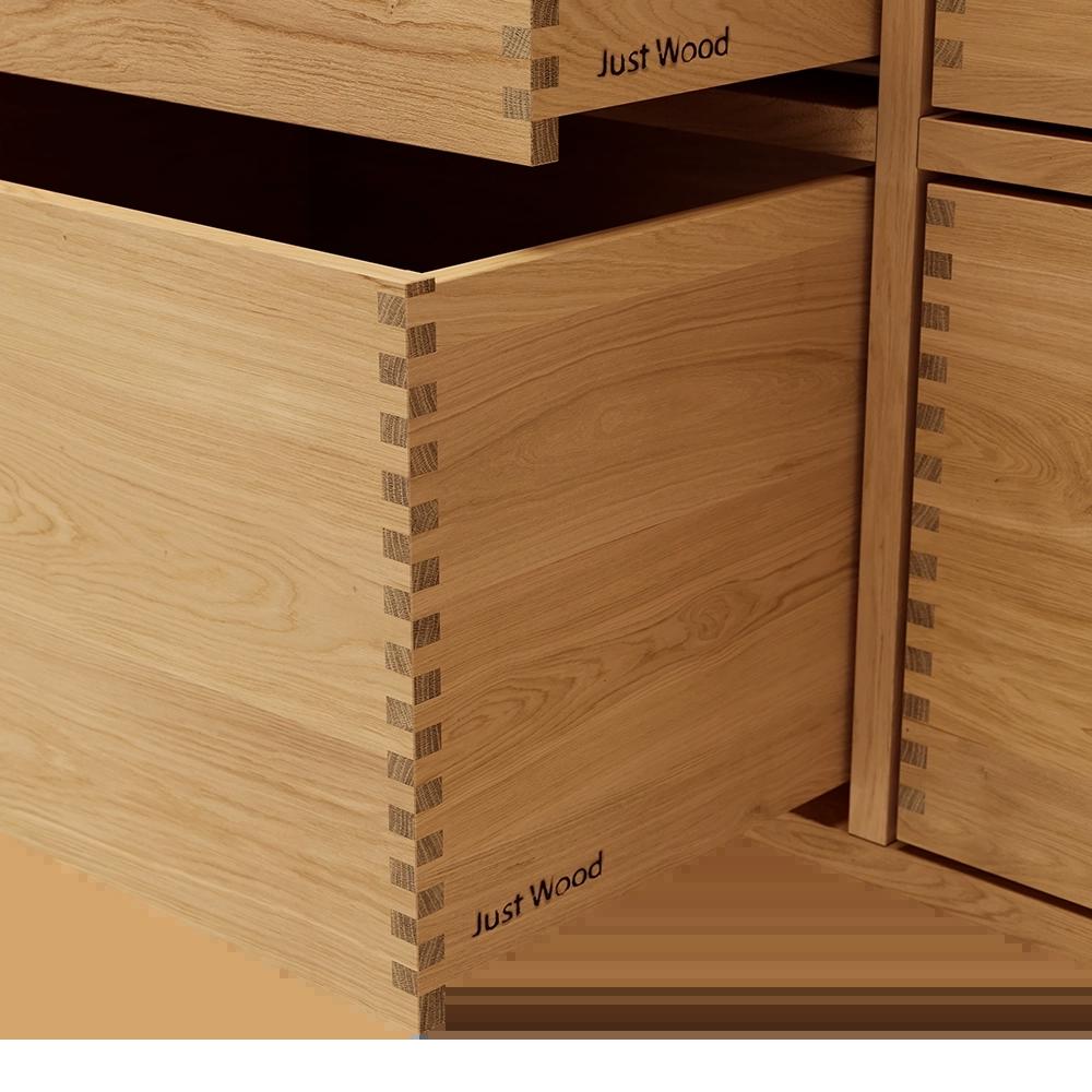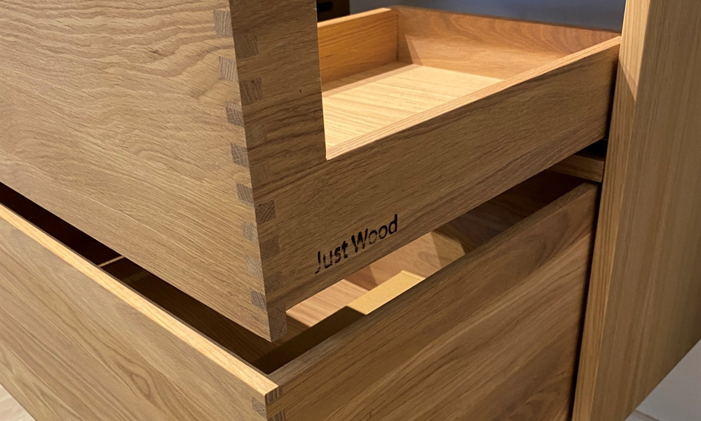 Deshalb haben wir hier ein kleines Video zusammengestellt, in dem Sie den Prozess von der Herstellung der Fingerstifte bis zum Zusammenbau der Schubladen verfolgen können. Wir von Just Wood selbst lieben den Prozess von der Produktion bis zur Montage absolut und schauen uns ein solches Video mit großer Freude an. Wir hoffen, dass Sie das Gleiche tun.