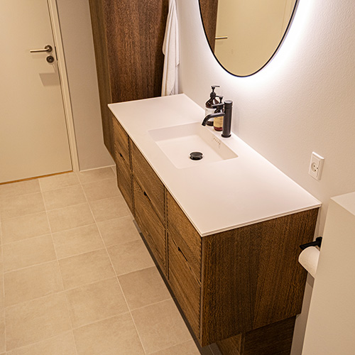 Just Wood Dark geölte Badezimmermöbel sind ein wunderschönes und einzigartiges Produkt, das Ihr Badezimmer mit besonders hochwertigen Materialien zu einem elegantes Hingucker macht.
