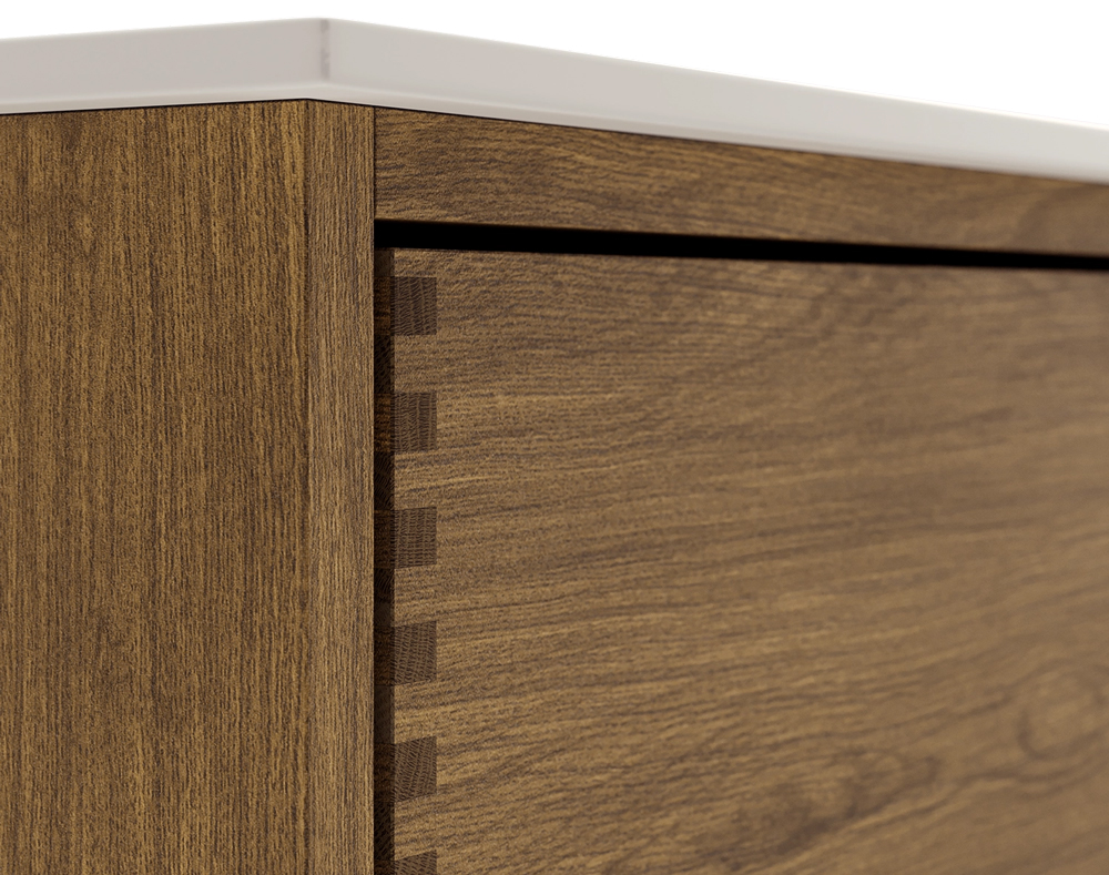 Eines der Merkmale unserer Schubladen sind unsere massiven, geölten Fingerklemmverbindungen, die in unserem Werk in Dänemark von Hand zusammengebaut werden. Sie sorgen für ein schönes und ästhetisches Aussehen, das Sie zu Hause stolz zur Schau stellen können.