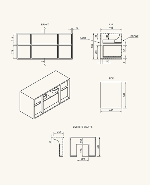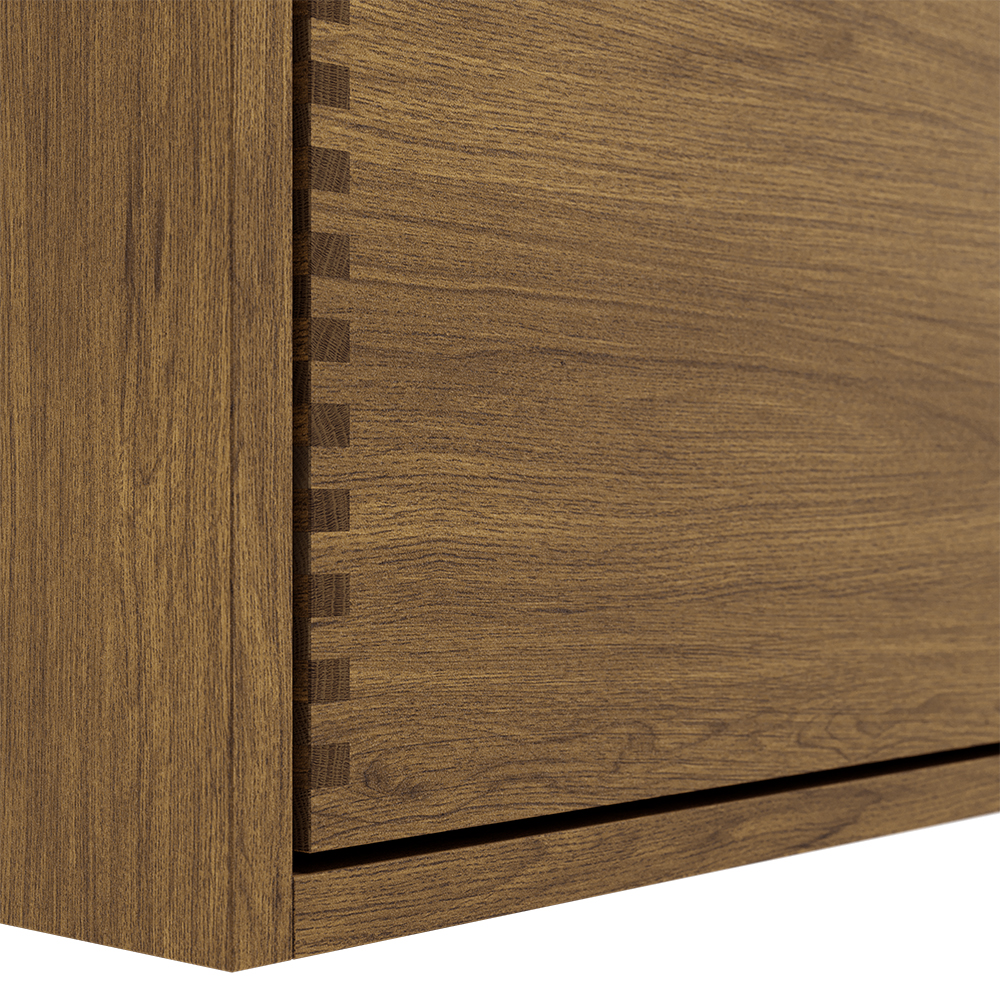 Der Schrank ist aus 19 mm-starkem Holz gefertigt, inkl furnierter Eichenfront.Die Holzschubladen sind aus 13 mm-starkem Holz und mit Fingerzapfenverbindungen verarbeitet. Sie werden teilweise in Dänemark hergestellt. Wirklich hochwertige dänische Qualität, die zu Preisen verkauft wird, die weit unter dem Marktpreis liegen. Gleichzeitig haben wir im Vergleich zu unseren Mitbewerbern eine extrem kurze Lieferzeit.