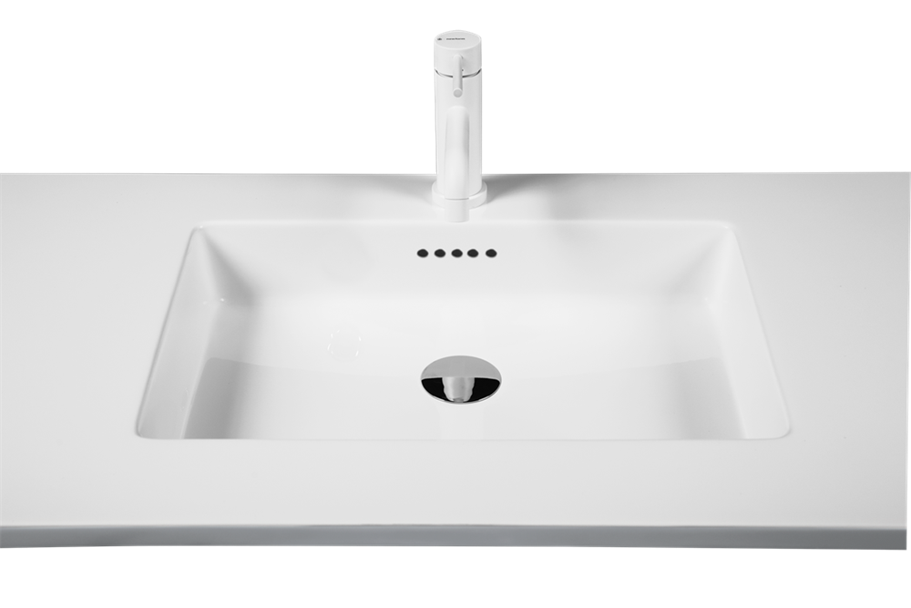 Solid Surface Colombo Arctic White mit Hahnloch für Armatur - 1601x480 mm - Beckengröße: 480 x 300 mm - Beckentiefe 90 mm.