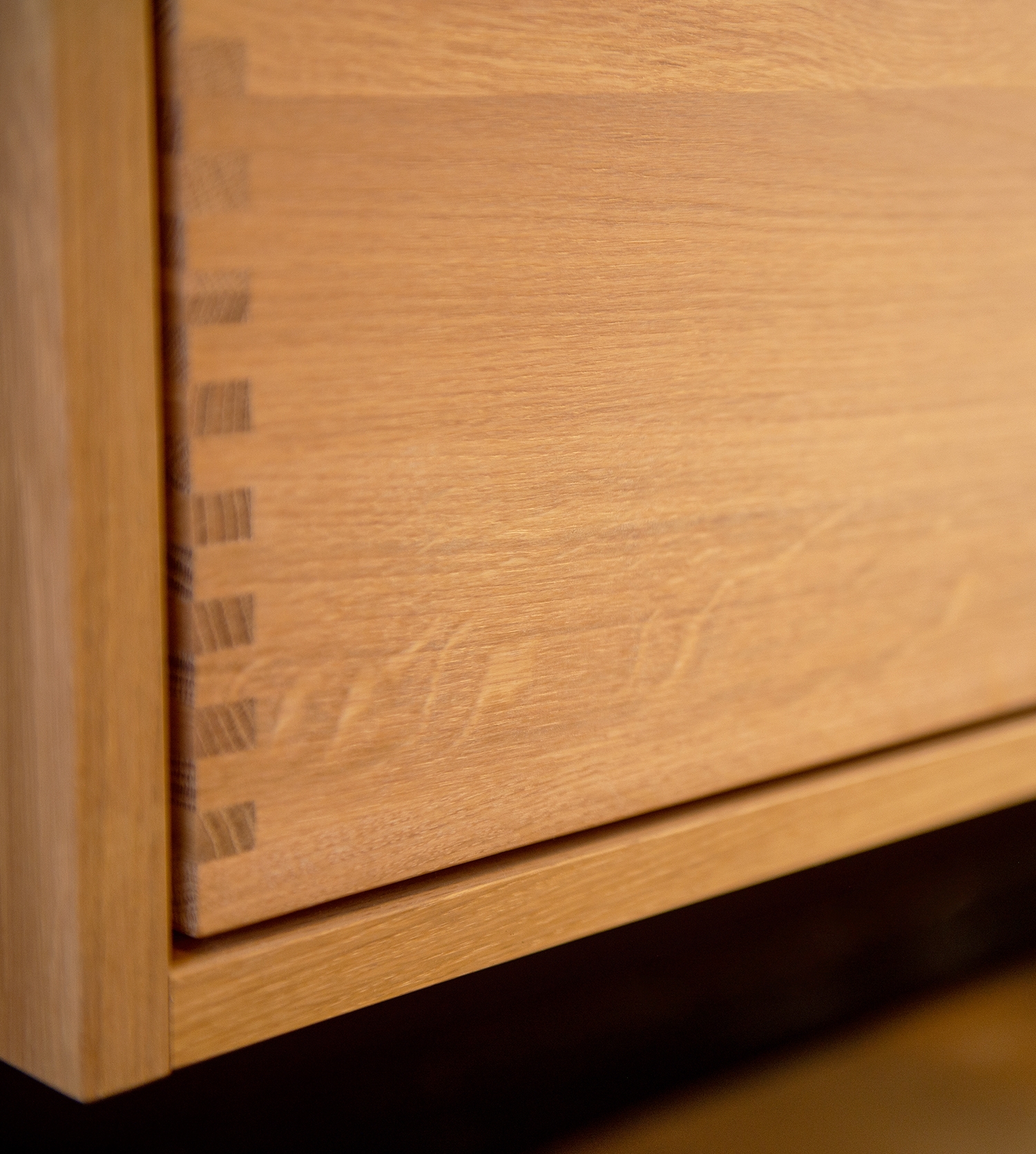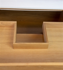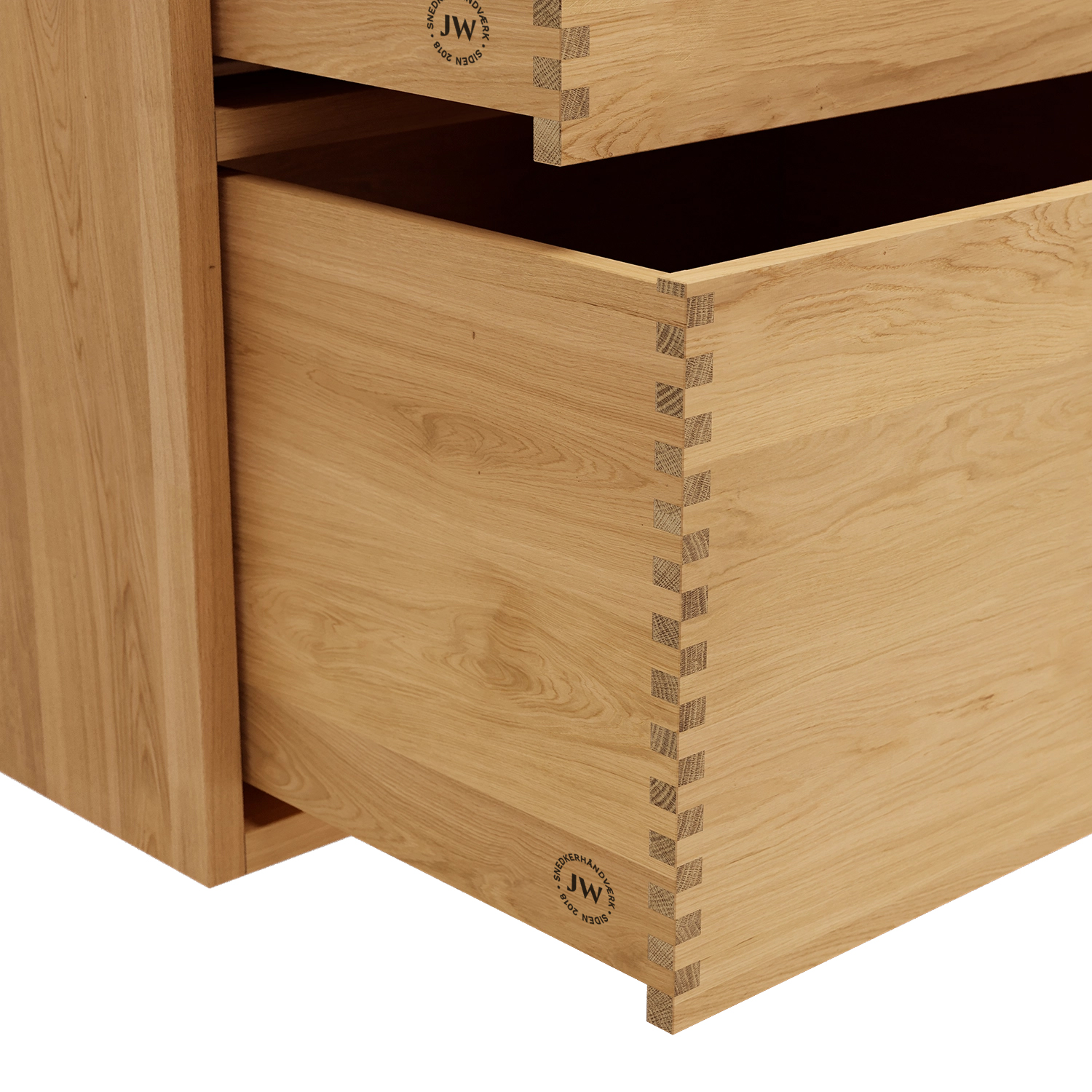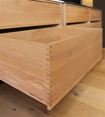 Eines der Merkmale unserer Schubladen sind unsere massiven, geölten Fingerklemmverbindungen, die in unserem Werk in Dänemark von Hand zusammengebaut werden. Sie sorgen für ein schönes und ästhetisches Aussehen, das Sie zu Hause stolz zur Schau stellen können.