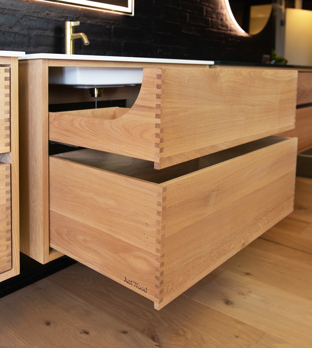 Deshalb haben wir hier ein kleines Video zusammengestellt, in dem Sie den Prozess von der Herstellung der Fingerstifte bis zum Zusammenbau der Schubladen verfolgen können. Wir von Just Wood selbst lieben den Prozess von der Produktion bis zur Montage absolut und schauen uns ein solches Video mit großer Freude an. Wir hoffen, dass Sie das Gleiche tun.
