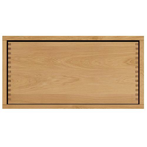 Der Korpus ist aus 19 mm dickem Material gefertigt, mit einer Eichenfurnier-Kante, die auch geölt ist und fertig montiert geliefert wird. Der Sockel ist aus geöltem Eichenfurnier gefertigt.