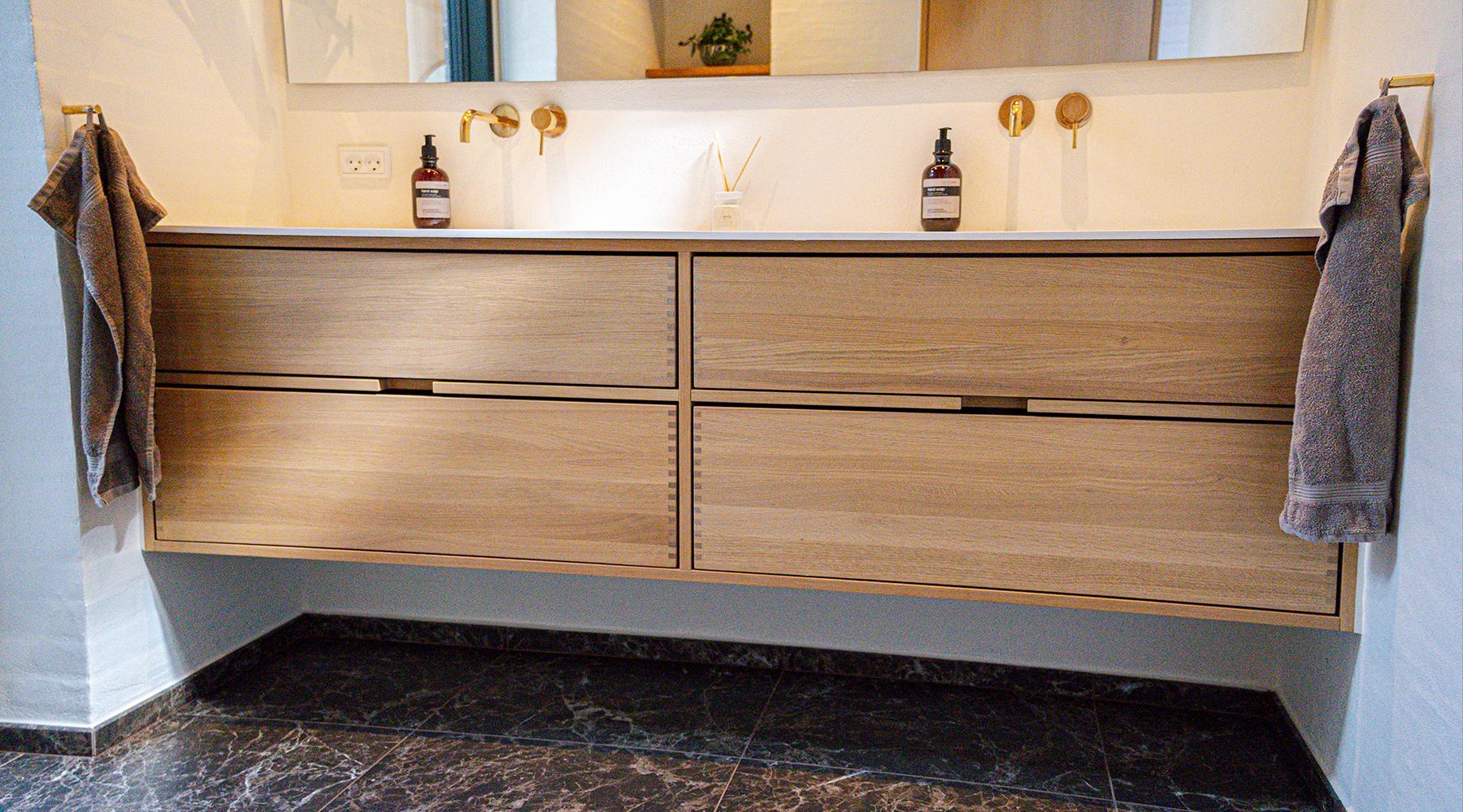 Ihr Wunsch sich den Traum von schönen Schreiner-Möbeln für die Küche, das Badezimmer oder das Schlafzimmer zu erfüllen, ist nur ein paar Klicks entfernt. Bei Just Wood tun wir unser Möglichstes, um Ihren Traum von einem einzigartigen Schreinerprodukt aus den besten Materialien zu erfüllen. Unsere Schreiner-Möbel sind mit massiven, geölten Eichenholzschubladen mit Fingerzapfenverbindungen gefertigt. Alle Schubladen sind mit Vollauszug und Soft-Close-Funktion ausgestattet. Die Schubladen haben starke 8 mm-dicke Böden und sind extra tief, um den Platz im Schrank optimal auszunutzen. Alles ist so gestaltet, dass es perfekt zusammenpasst.